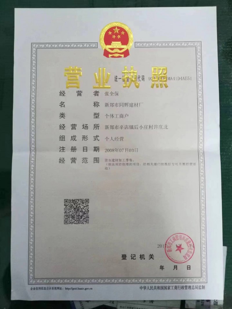 | 發(fā)證機(jī)構(gòu): | 新鄭市工商管理和質(zhì)量技術(shù)監(jiān)督局 | 發(fā)證時間 : | 2017-12-11 |