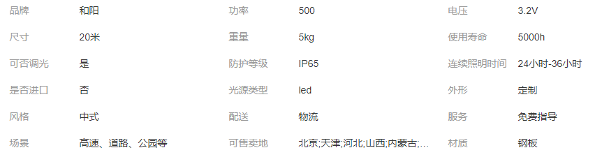 和陽(yáng)20米500w戶外一體化道路照明led智慧路燈太陽(yáng)能路燈桿