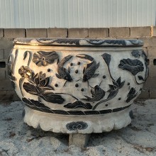 荷花魚(yú)缸流水景觀雕塑水景大理石青石家居室內(nèi)擺件石頭石雕魚(yú)缸