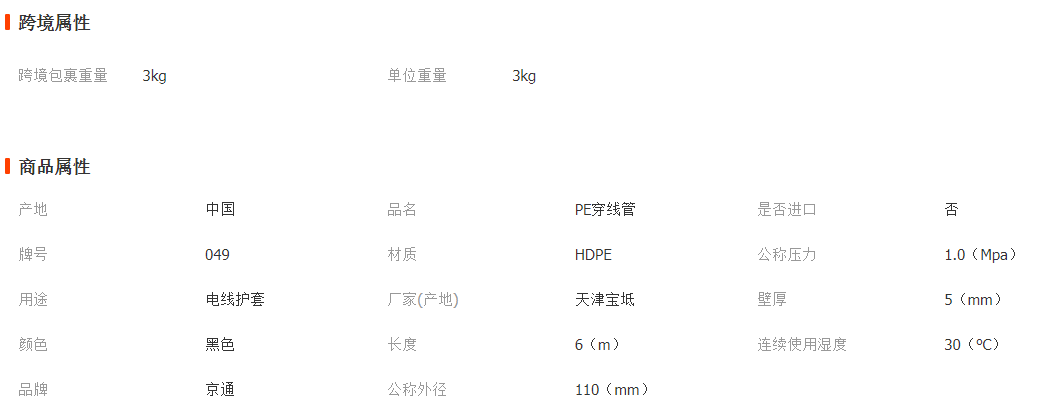 PE穿線管光纜保護(hù)管、