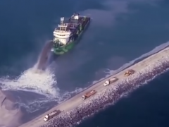 專門為填海所研發(fā)的船,船體直接裂成兩半,泥土砂石全流進(jìn)海里